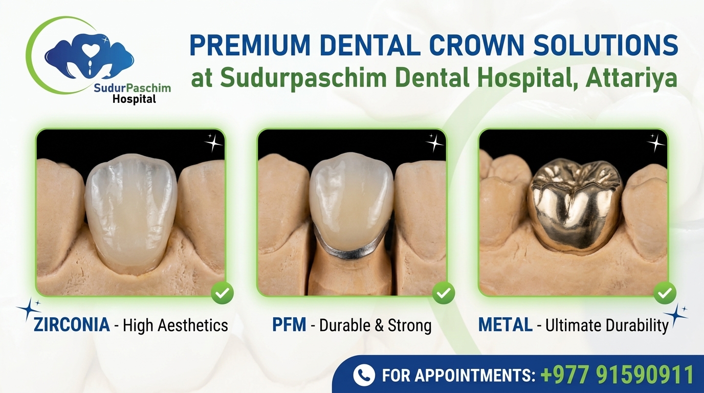 At Sudurpaschim Dental Hospital, we prioritize your preferences, and our expert team is committed to guiding you toward the ideal crown choice for your unique dental needs.